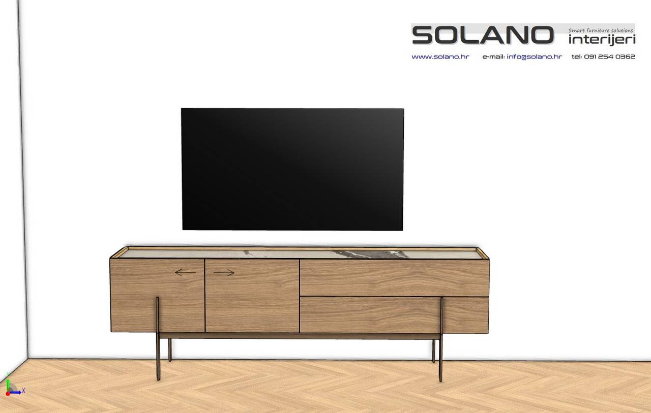 Santa Lucia linija Homy, moderna i elegantna komoda Athemis. Mogućnost izbora boje, drveni dekori, eko lakirano, lakirano mat. Dimenzija komode, širina 220, dubina 51 i visina 72 cm.